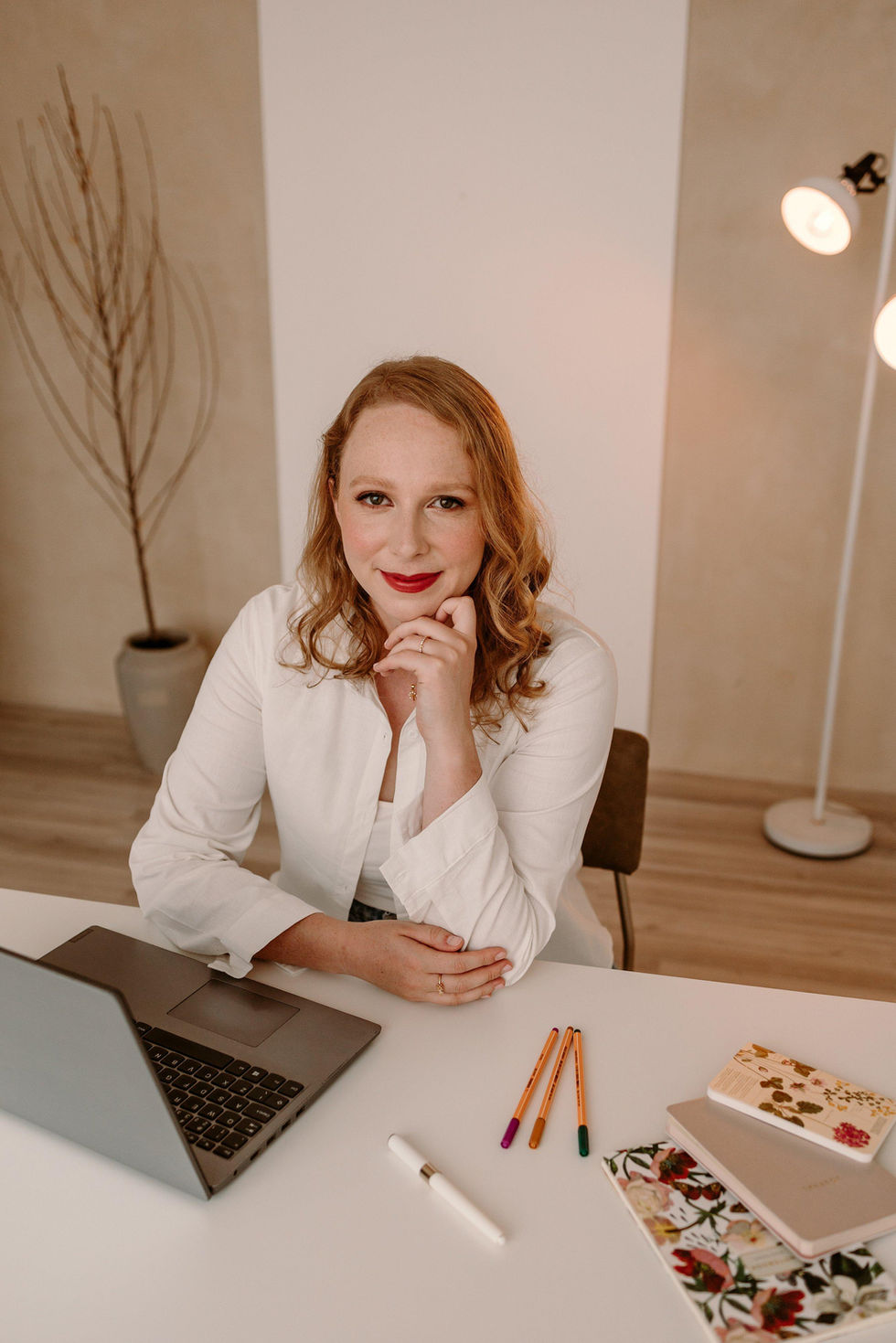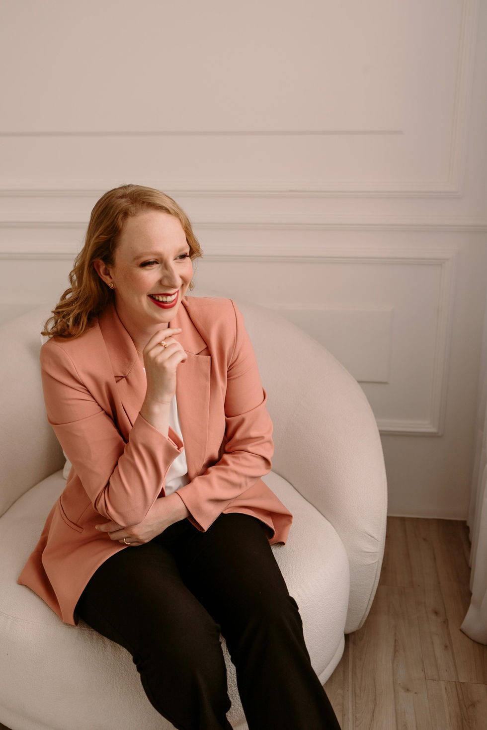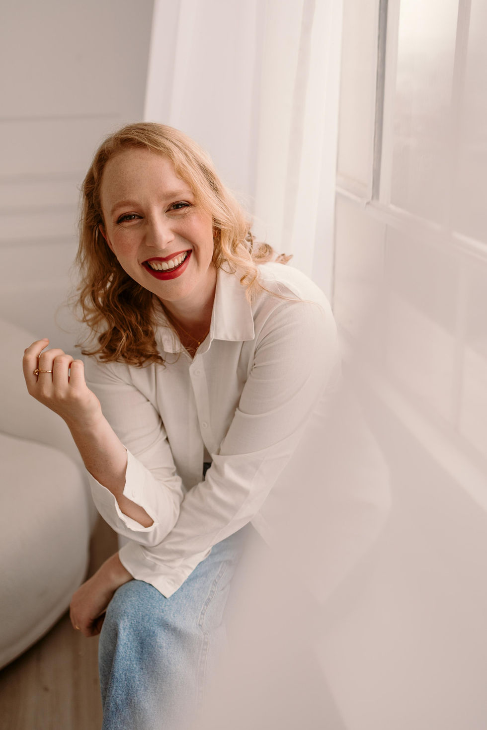 A Rebeca está iniciando sua trajetória como coach de idiomas, e tive a oportunidade de criar um ensaio que reflete a identidade visual dela. Cada detalhe foi pensado para que as fotos transmitissem os princípios da marca e a essência da Rebeca, trazendo leveza e personalidade, mesmo nas composições mais formais.
