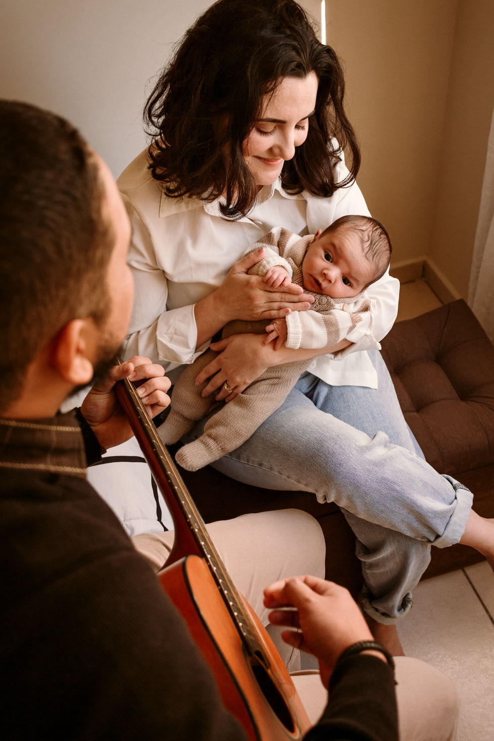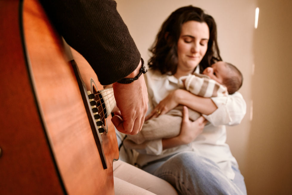Para fechar o ensaio, o papai músico tocou violão para a família. Apesar do frio, o clima era aquele quentinho que chega até o coração. 🥰